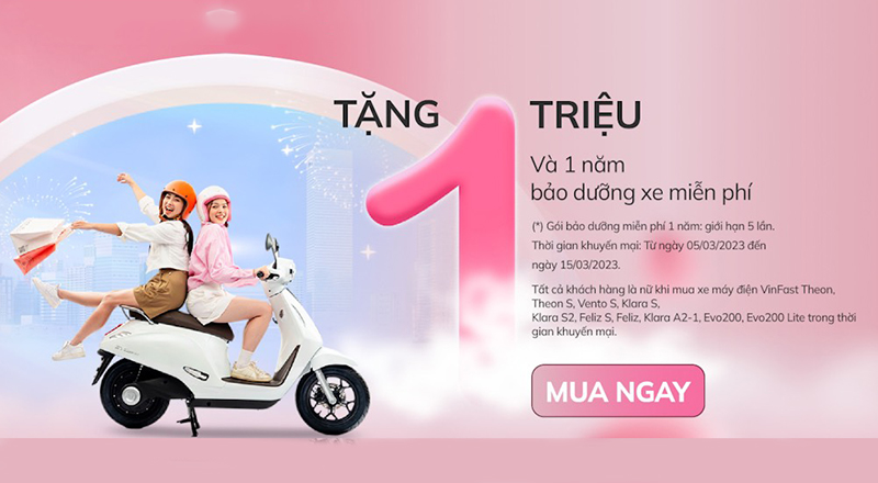 Nhằm tôn vinh những khách hàng nữ trong tháng 3 này, VinFast Đông Anh  xe máy điện triển khai chương trình “Cùng VinFast Đông Anh an tỏa yêu thương”. Theo đó, khách hàng sẽ nhận được nhiều ưu đãi hấp dẫn, cụ thể: